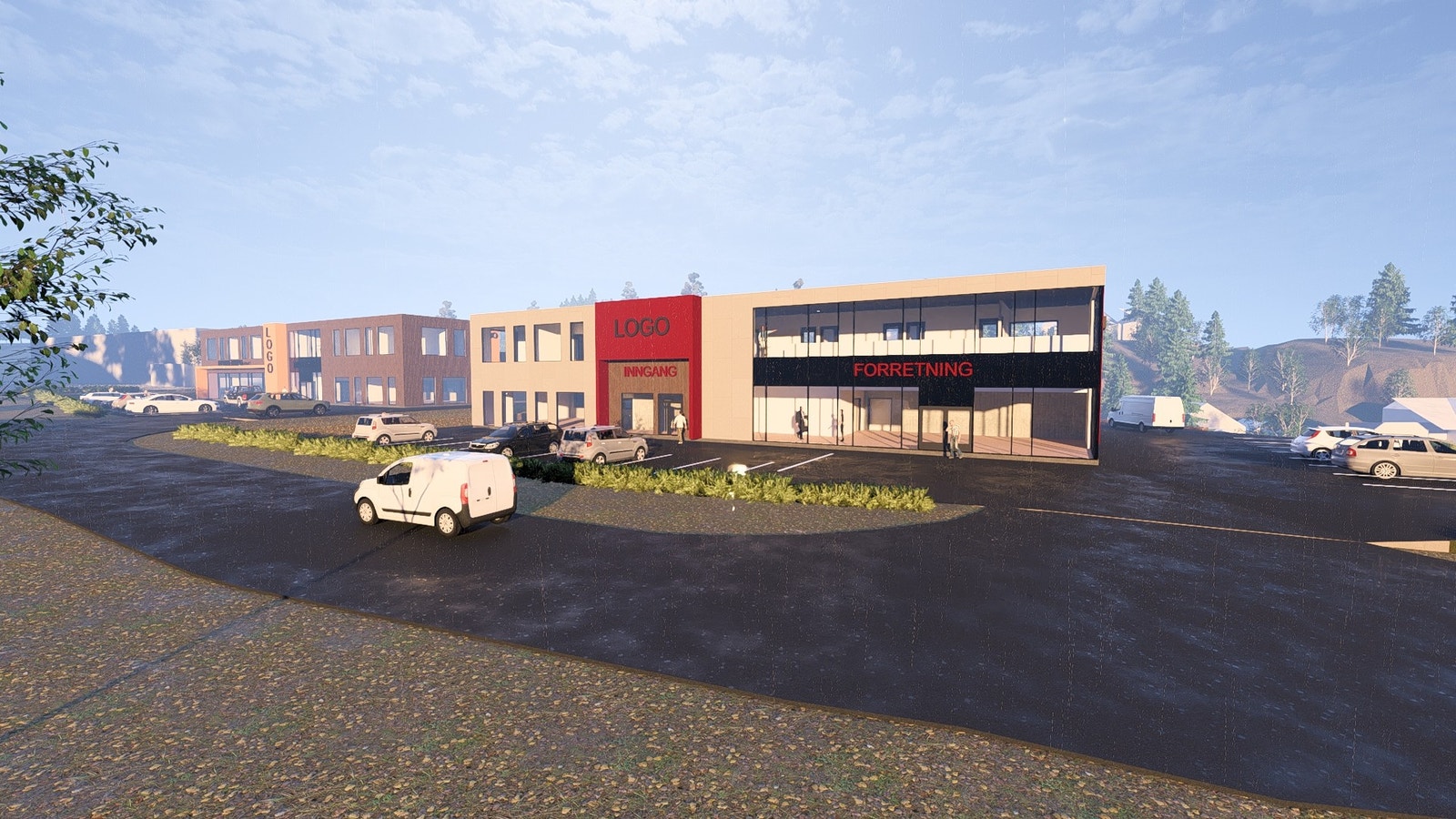 - Parkeringskrav: 1 plass per 50 m² gulvareal